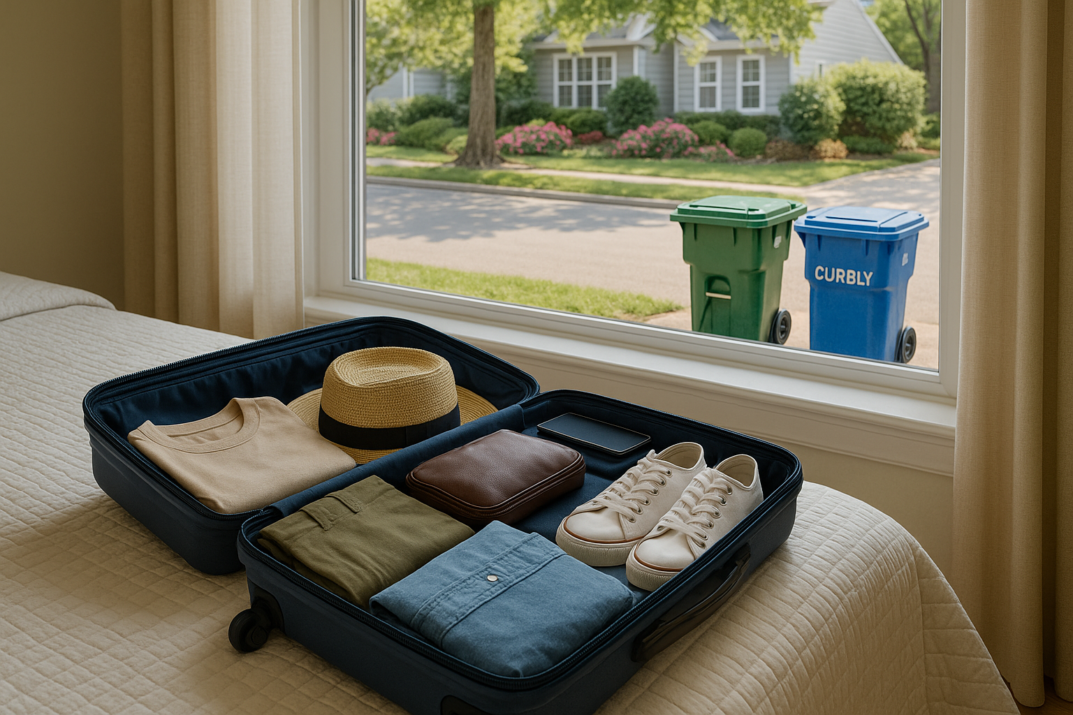 Headed out of town? Let us manage your bins while you relax. We’ll roll them out on pickup day, return them after, and give them a light wipe-down and deodorizing — so you come home to a fresh, cared-for curb instead of a neglected one.